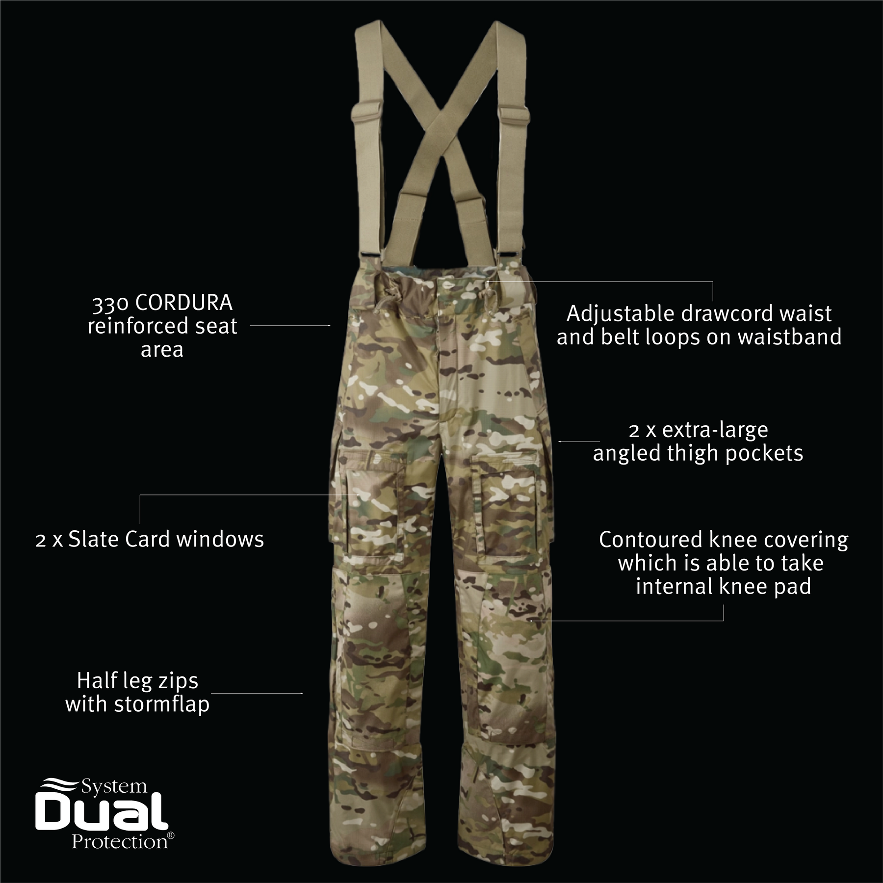 Designed for static op work, open-top vehicle crews, quad bikes and any other operator that needs a good thought-out foul weather pant to protect from the worst weather conditions.
